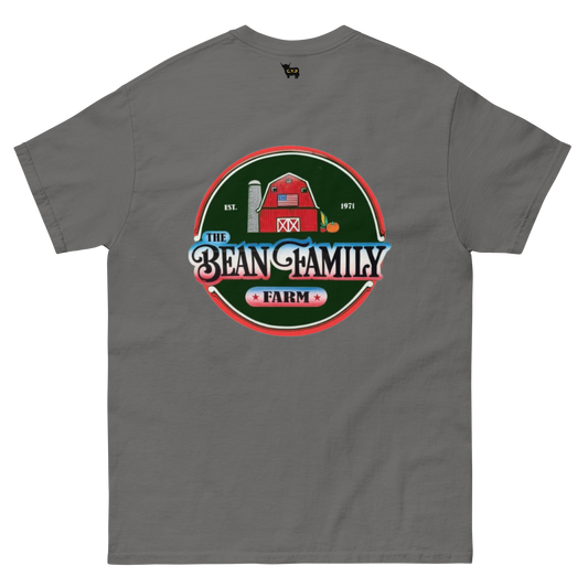 Bean Family Farm Logo / Born & Raised USA - Adult T Shirt